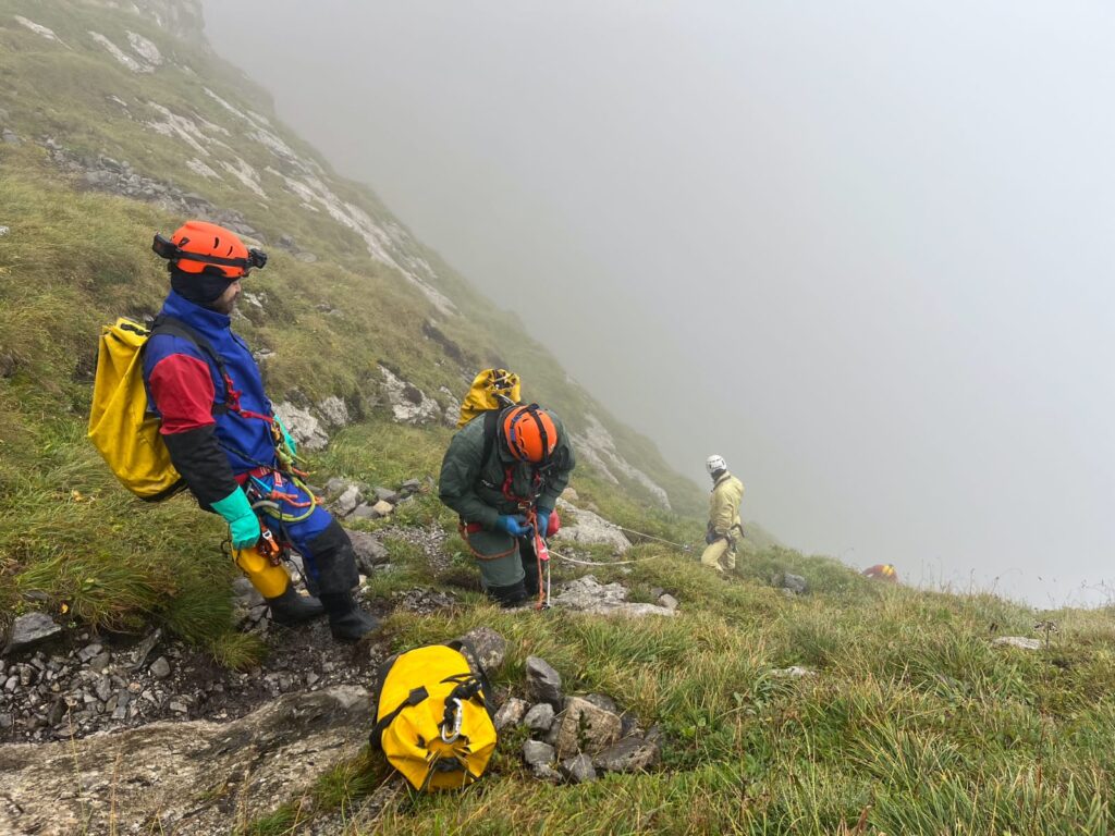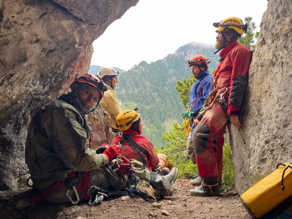 Pogoda nam sprzyjała – ani gorąco, ani zimno. Za to odczuwałam ogromną wdzięczność na szlakach niosąc na plecach ogrom tych wszystkich, oczywiście tylko potrzebnych, rzeczy w plecaku. Coś tam siąpiło, przechodziło bokiem. Zdarzało się też uciec przed deszczem, a jak już tak mocno lało to ja akurat miałam wolne. Panowie z mojej grupy w dzień po ogromnej nocnej ulewie i deszczowym poranku poszli do Ptasiej Studni, gdzie zlało ich jeszcze bardziej. Taplali się tam radośnie w wodospadzie, a w Studni Palidera to jeszcze radośniej, bo nawet we dwóch. Wrócili przemoczeni tak, że nawet na bazie przy mocno rozgrzanym piecu nie udało się wysuszyć kompletu odzieży na tyle, aby na kolejną akcję było sucho i komfortowo.