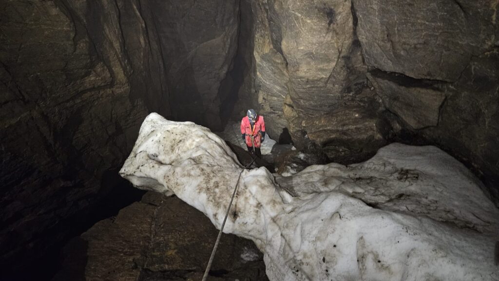 Największe wrażenie wywarła na mnie Jaskinia Wielka Śnieżna. Bądź co bądź, przy odbiciu ze szlaku, od słów „to już blisko, widzisz ten punkt? To tam!„, minęła wieczność, a zmęczenie kursowe dało znać. Wydawało się, że to podejście nie ma końca, za rogiem kolejny róg, a za nim kolejna długa do góry. I tak mój mózg odczytał to ze sto razy – chociaż to wcale nie jest prawdą.